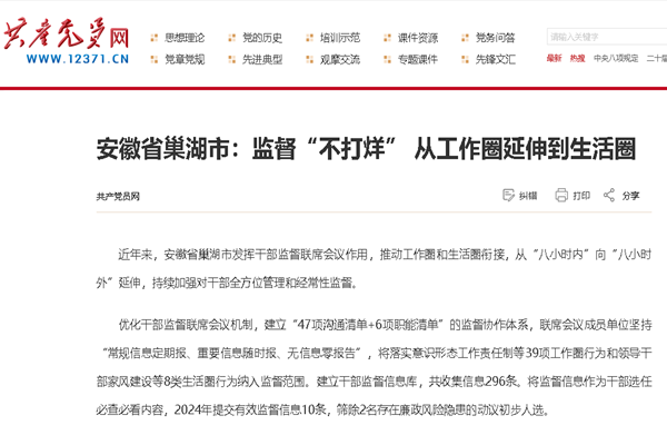 安徽省巢湖市:監(jiān)督“不打烊” 從工作圈延伸到生活圈